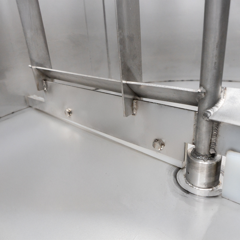 Vysoce kvalitní konstrukce z nerezové oceli: Celé zařízení je vyrobeno z nerezové oceli AISI 304 (1.4301) vhodné pro styk s potravinami, která zaručuje dlouhou životnost, snadnou údržbu a splňuje nejpřísnější hygienické normy.